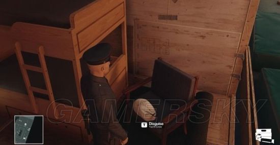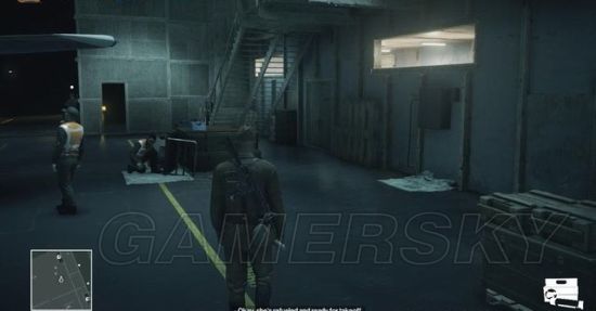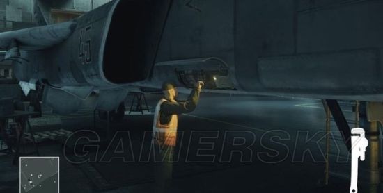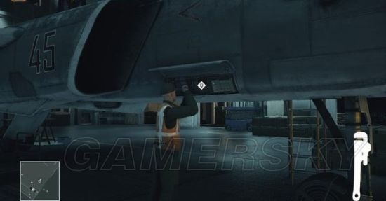 行动时注意巡逻士兵的位置,笔者建议等那两名聊天的维修工回到机库再动手,眼目越少越好下手。