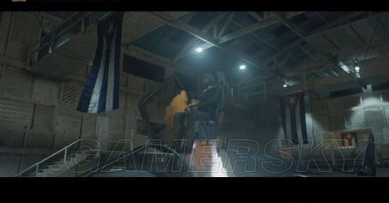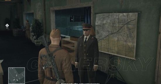 换好苏联士兵服装,前往一楼的办公区偷听如图两名警卫的谈话,得知有份空运来的幻灯胶片,里面有着机密的军事情报。这份幻灯胶片其实是哈斯佩尔?奈特从古巴逃往苏联的路线图,克格勃将军和哈斯佩尔?奈特一定乐意讨论它的细节。