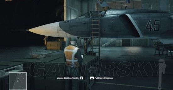 在正门的警卫室换上警卫服装后,在基地的前院偷听两名维修工的谈话,得知要杀的那个象棋大师非常在意飞机上逃生喷射座椅的安全,并且会亲自测试这些设备的安全性。