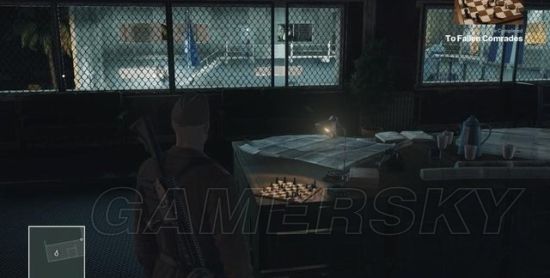 进入会见室,这里只有克格勃将军、象棋大师和他的守卫能够进入,等他们全部离开屋子往桌上的托盘放上伏特加酒瓶,达成挑战“送酒侍者”。