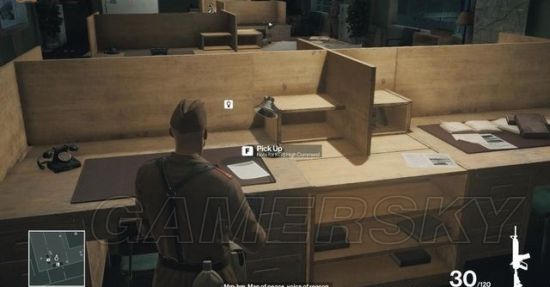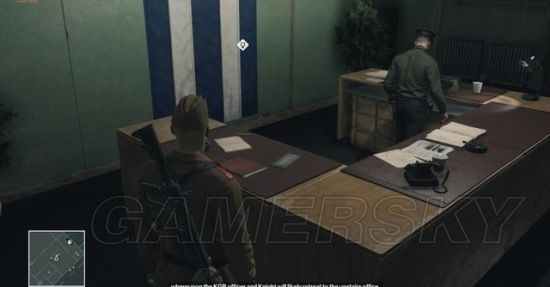 在换好士兵服装后,前往二楼的大办公室,在办公桌上找到一份克格勃高级指令书。