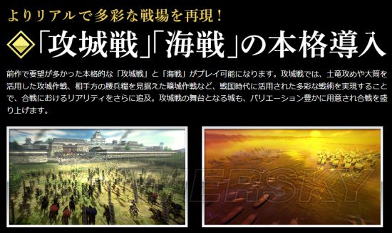 玩家呼声最高的“攻城战”及“海战”可以在本作中玩到了,利用地形、装备、战术的深奥投入新的合战。