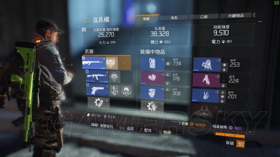 笔者刚升30等时的装备纪录,可以看见大部分的装备都是蓝色的