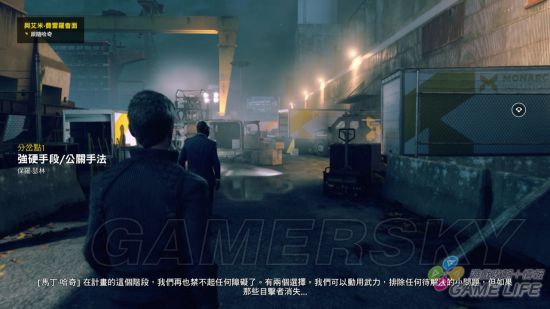 在实际进入可由玩家亲自操作的场景后,虽然因为视角上的限制无法将每个部分看的仔细透彻,但依然能从地面上移动的光影和一些可互动对象的物理效果中,感受到制作小组完全不愿在画面水平上有丝毫退让,对非常在乎‘真实感’的玩家来说,《量子破碎》的整体表现实属可圈可点。无论是在平时移动还是在战斗中,玩家都能够发现地图中有配置不少互动对象,有些是能够触发特定剧情演出或得到额外故事线索的‘故事对象’,也有些是施予攻击后会引发爆炸的特别机关,虽不像开放世界游戏那般广大,但地图上其实充满了不少细节,等待想挖掘更多游戏信息的玩家去细细探索。另外不可不提的是,《量子破碎》本身虽是动作游戏,但在移动的过程中其实也包含了不少解谜要素,玩家得仔细观察地图中的地形与机关配置,并使用杰克得到的能力来避开障碍或创造新通路,才能够继续向前推进。