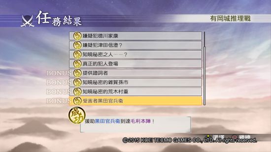 随著任务的推进,黑田官兵卫会出现在,右下方的据点,只要接触黑田官兵卫,就会触发这个加分任务,只要击破档路的大众脸武将就成功了