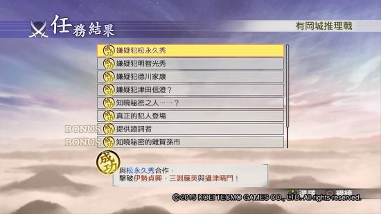 《战国无双4-2》有冈城推理战此战没有任务绑定武将,任务关卡一次性触发,今天小编带来“laurence390”分享的《战国无双4-2》有冈城推理战任务攻略,各个关卡怎么玩,加分条件是什么,下面我们一起来看吧。