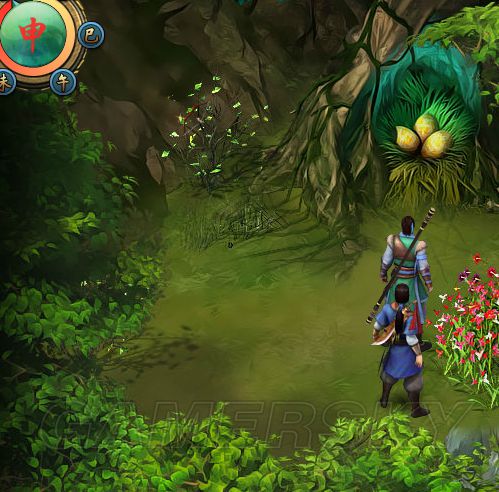 3。直走遇到金雕,进入左手边的[采药迷宫],进入后采集地上的花,采药获得30+紫芸草,交给拦路的雕,