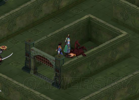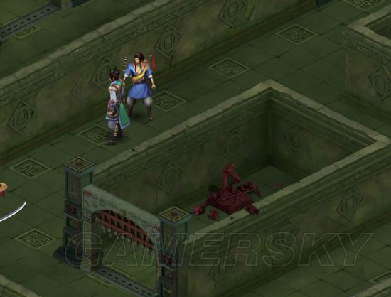 主道路被打开,往前走进入右手边[六怪迷宫],打碎2个雕像中前面[右手方向]的[易碎的雕像],踩石板获得提示后回到主道。