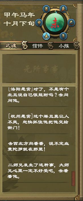 综合:此任务完成方法有2种,一种是等到申时,剧情自动完成。另一种是主角寻找线索完成任务。如果自己完成,那么需要准备的工作有很多,甚至需要提前很久准备。此任务流程有一定的顺序,如果不按照顺序的话,剧情可能不大连贯。