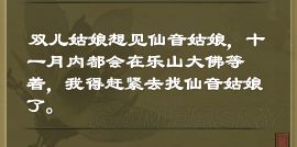 1。双儿支线,去忘忧谷带仙音去乐山