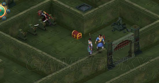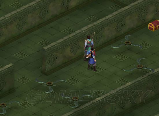 2。往前走,进入右手边迷宫,往下走,开扳手打开[飞刀迷宫],进去向上走,到了五飞刀处选择向上走[tip:这里难度有,多试几次。上面中间有块地方是两面飞刀都伤不到的],踩石板获得提示后回到主道。