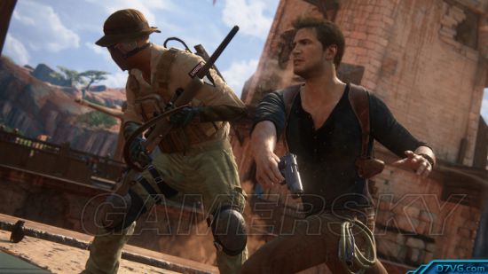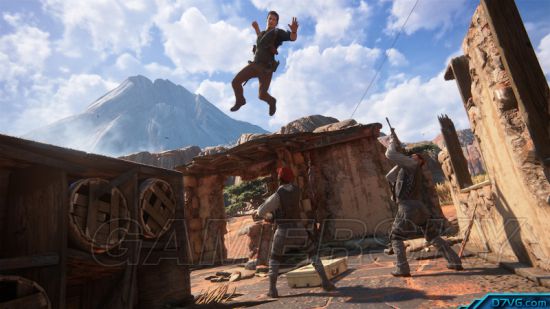 《神秘海域4》的战斗系统基本上承袭前几代,相信有玩过的玩家一定不会陌生。此外还加入几个关键新要素。首先就是多人模式中已经展现过的‘勾索’,让奈森可以摆盪越过较大的间隙,还可以从空中跃下袭击敌人。