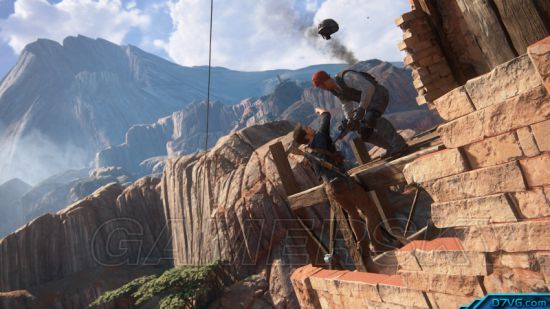 在打完这场硬仗之后,奈森一行人再度动身出发,不过这次又碰到一点小麻烦,唯一通行用的木桥居然断了。这边则是再度动用绞盘解谜,把残馀的桥柱扯断,让木桥下垂形成斜坡来通行。