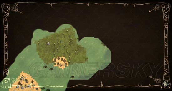 每张图只有两只,在特定的位置地形出现,沙滩上有4草3树枝,如下图: