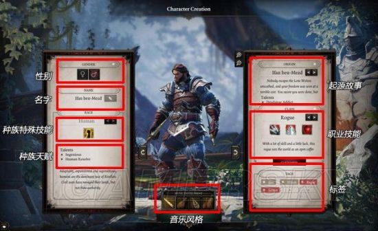 “音乐”:该功能为《神界:原罪2》加入的新功能,可为自己的角色设置个性化音乐。在角色创建时选择一种乐器,在游戏的某些关键点,你角色的主题音乐(根据你选择的乐器演奏)就会动态地融入世界。