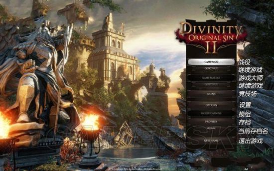 进入到《神界3:原罪》的主菜单,笔者在此逐项介绍选项。