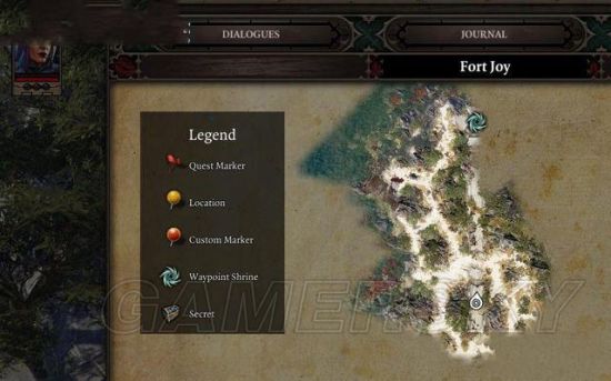 这里是你当前的冒险地图,上面有你的任务标记、地点名称、定制的路点和秘密宝箱等等。用鼠标滚轮可实现无级缩放。