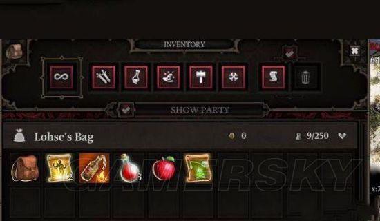 这里陈列着你身上携带的所有物品,并能进行分类。