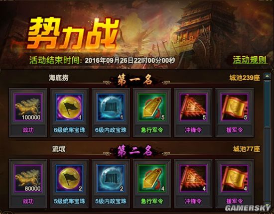 讲道理,就是比战术,指挥,人数。你大R再多,有可能也没用,建议就是援军多,守住要塞,留着遁甲,然后快到点一波反推,截止时间晚上10点。多的大家自行感受。奖励如下图。总之其实这些差距也不是很大,大家也不必太过于在于这些奖励,大家和睦相处才是硬道理。