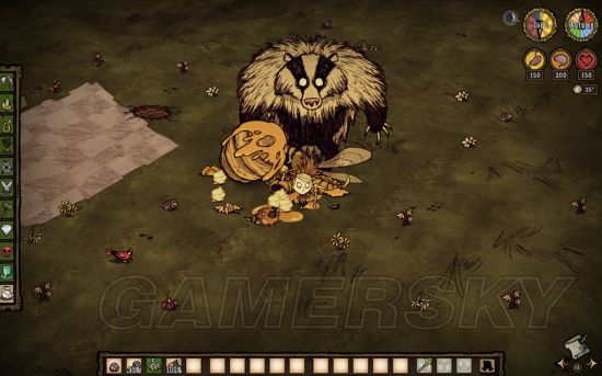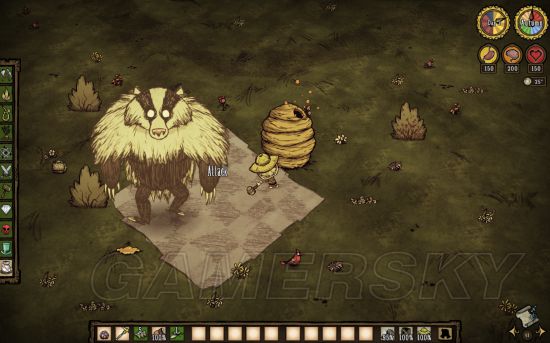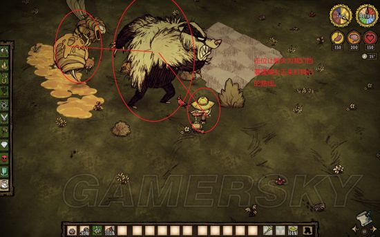 熊大在杀了小蜜蜂之后,仇恨可能会取消愣住然后到处闲逛,我们再把食物放到地上吸引熊大再捡走,或者再平A一下熊大,会再度暴怒。