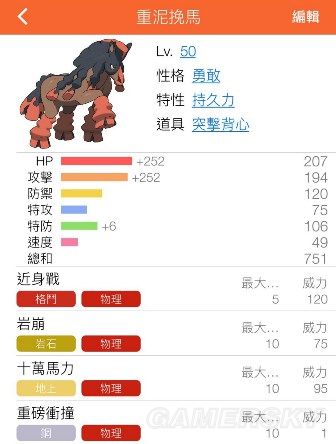 队伍后盾,该位子原本是考虑地龙,但还是喜欢马儿稳稳重重(穿背心)的感觉。地震虽好用,但十万马力也不会打队友(虽然单体);马儿非常非常的“稳重”,有时重磅冲击伤害很可观,曾放两次辗毙Mega蜥蜴王!要是不小心前面被对方放空间,换上马儿通常都会第一顺位攻击,因为马儿超级慢!