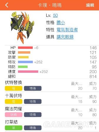 特性+讲究眼镜加持下,大多怪都能被10V确一,视对方更换绝招即可。魔法闪耀有时会直接收掉两只克属;打草结也能秒几只岩石、水系壮丁!比较棘手的是,戴眼镜后只能用一招!伏特替换打到现在没用过几次,是否有大大推荐其他招式?