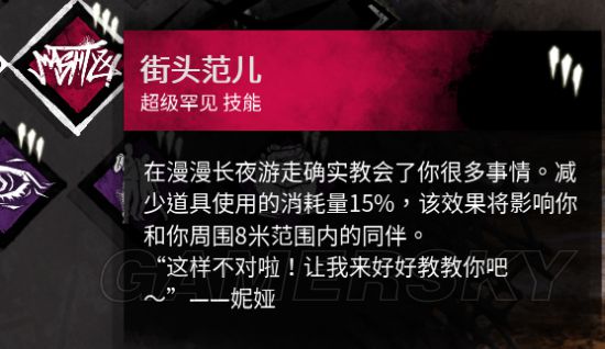 一般般,这个技能真的一般般。先不说本来就没有他的格子,然后他增加百分之十五的消耗量,贴吧有人测试过仅仅给手电筒增加了2s左右的时间,也就多照瞎一次。还浪费一个格子,不值得,至于这个范围加成,你总不能跟你队友组成一个光剑大队吧。。。