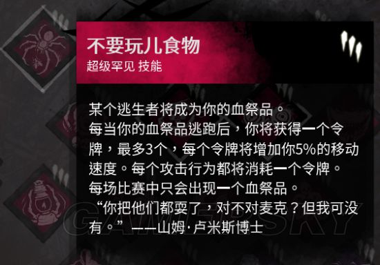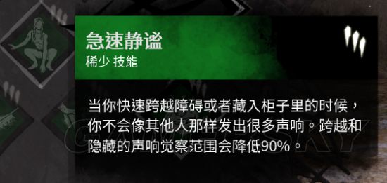 有一个骚套路是这样的——技能:钢铁意志+急速静谧。然后带手电筒。照瞎屠夫之后直接找柜子就进去呀骚的不行。但是实用性其实很低,本技能永!远!不!会!在T1T2类中出现的,无论哪个版本。