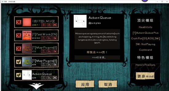 MOD:地图插件(不是地图全开)、行为排队论、状态常显、四格背包、七彩萤火虫、食物属性、智能烹饪锅