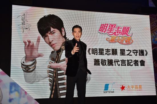 31日甫获得音乐状元美誉的金曲歌王“萧敬腾”为《明星志愿─星之守护》手机游戏代言,出席“明星志愿-星之守护 萧敬腾代言记者会”,首度现身台北电玩展中大宇资讯摊位舞台,歌迷及玩家为一睹萧敬腾风采,更是挤爆整个展览会馆。而萧敬腾第一次参与电玩展盛会,除首度曝光代言造型外,更亲自邀请玩家上台与他一起重现游戏电视广告剧情,帅气外表及腼腆深情的演技,电翻台下所有玩家!而舞台上趣味的互动游戏加上各式精美赠品,更是嗨翻全场!为一年一度的游戏盛会再添光彩!
