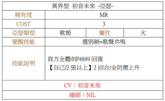 [火属性 歌姬 ★6(MR)异界型 初音未来 -亚瑟-]