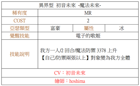 [冰属性 富豪 ★6(MR)异界型 初音未来 -魔法未来-]