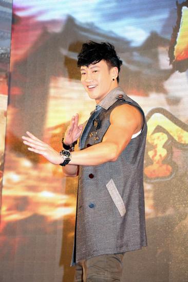 何润东以一身露肩劲装出席记者会活动,结实的肌肉和俊美外表更号称是”史上最帅关公”