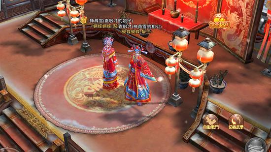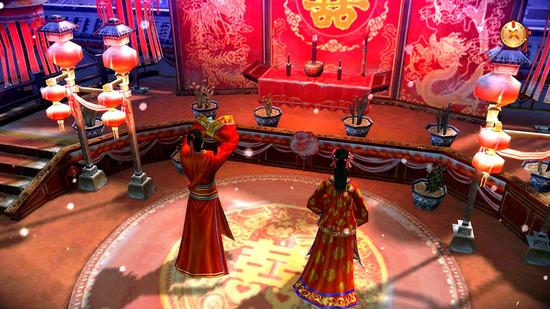 走闯江湖好不容易缘份到了,遇到情投意合的另一半,这时就想大声宣告“伊是我的人!”透过‘结婚’系统,玩家们将能如愿,对着整个江湖用力放闪。改版后玩家只要与心上人携手前往苏州的结婚殿堂,就可以在媒婆与亲朋好友的见证下,换上专属凤冠霞帔,拜堂成亲,走红毯、放烟花、发喜糖一次做足,让你享有最古典风情的中式婚礼的同时,系统还会出全服公告,向江湖发布你俩的喜事;除此之外,玩家还能获得专属另一半的甜蜜称号,让你走闯江湖,光芒四射!