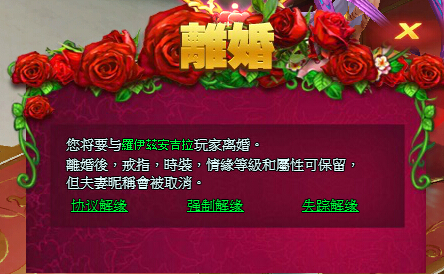 申请强制解缘,解除您的后顾之忧,只要花费300钻石即可随时离婚。