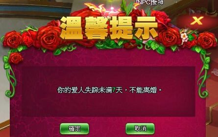 不用担心,当爱侣失踪达到七天以上(离线七天未登入游戏),即可找爱神申请失踪解缘即可。