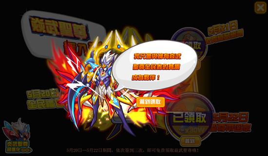 本周的全民奖好礼又来囉~此次登场的是可以自由操作圣焰的‘焱武圣尊’要来陪各位玩家一同对抗邪恶势力的侵袭,只要成功参与活动,并完成每日签到,每位玩家都可以将这帅气又实用的精灵带回家喔!