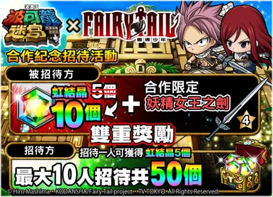 玩家只要在活动期间内登入游戏,每天都能够拿到彩虹结晶,另外为纪念‘合作活动’官方将重置可招待人数,在活动期间内被招待的玩家可以获得 10 个彩虹结晶及妖精女王之剑。而招待好友的玩家,每招待一人即可得到 5个彩虹结晶,最多可以招待 10 人。