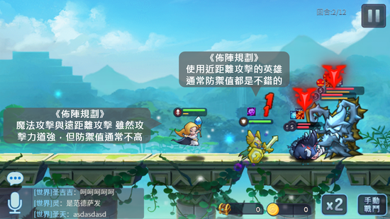 游戏操作除了要有点击炮塔调整圣灵英雄出发的方向感外,还要搭配每位圣灵英雄施放技能的射程来指定落下位置,每位圣灵英雄的素质也不同,是否能站在第一线勇猛阻挡敌人的攻击,就得看召唤师的布阵安排了。