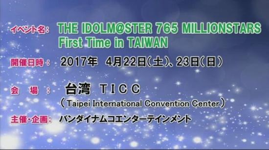 这次‘THE IDOLM@STER 765 MILLIONSTARS First Time in TAIWAN’演唱会,将集合旗下《偶像大师》、以及《偶像大师 百万人演唱会!》的众多偶像们,来台举行为期 2 天的活动,这次演唱会也是《偶像大师》系列首度于海外举行的独立演唱会。