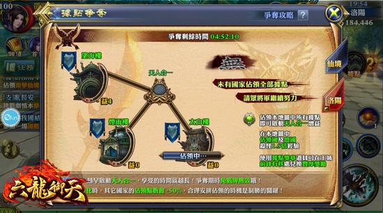 好康不间断的《六龙御天》于游戏更新后同步推出‘据点争夺活动’,少侠们于活动期间内,在‘洛阳’、‘南华仙境’地图中,各会有三个据点。少侠们在争夺期时,需抢得占据点的归属权,当某一国家同时占领同一地图中的三个据点时,则本次争夺将会结束进入休眠期。休眠期时,占领国及盟国少侠在占领地图则可享受‘天人合一’的增益效果,效果将持续至本次争夺时间结束。