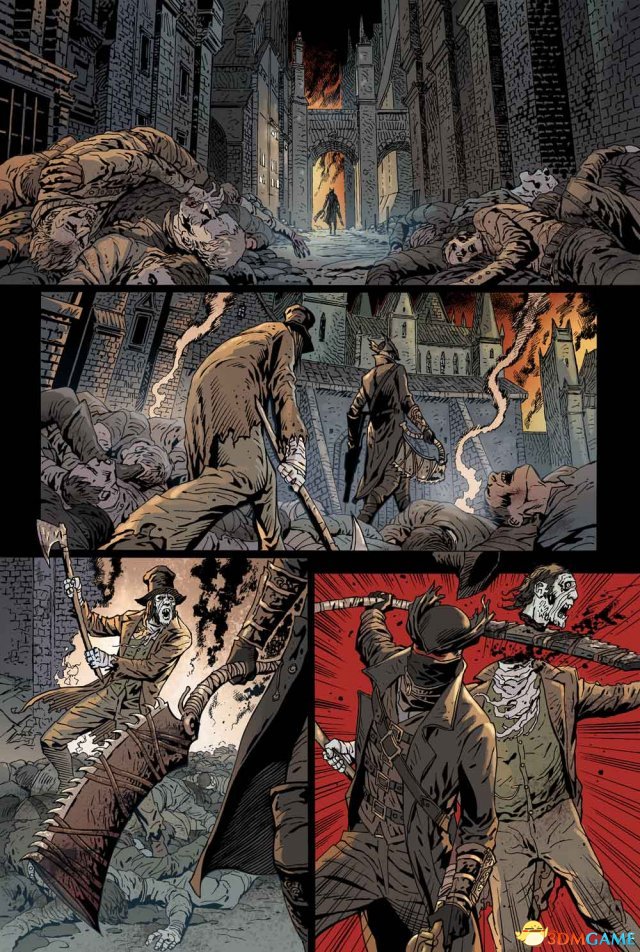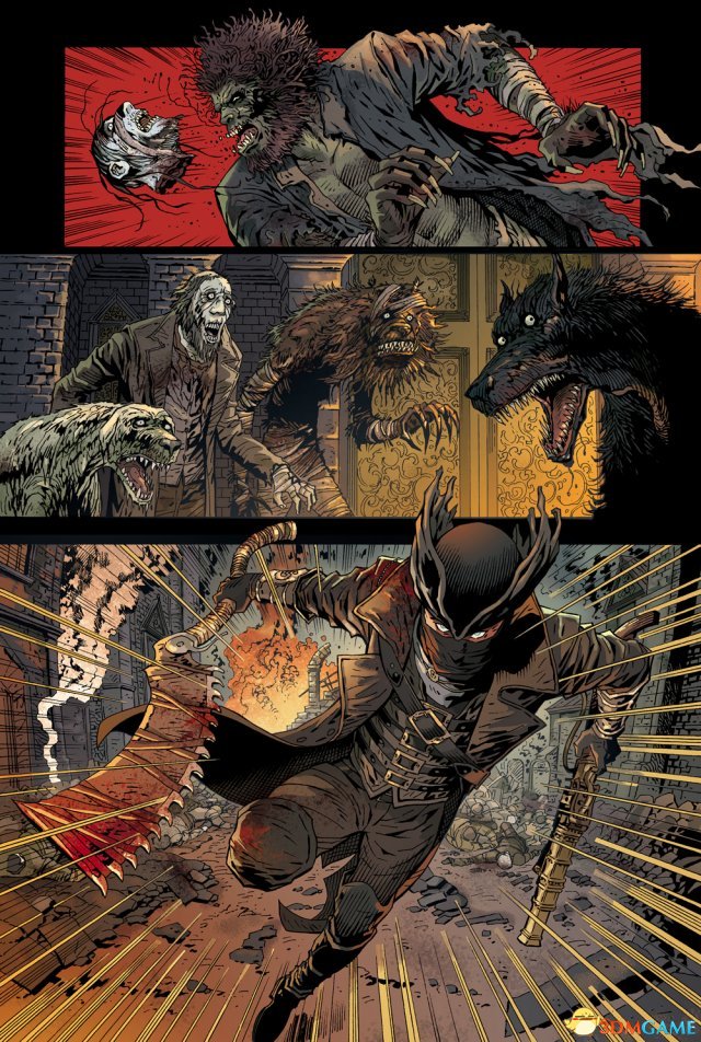 近日外媒曝光了《血源》漫画《Bloodborne:The Death of Sleep》新截图,展示了漫画新内容,猎人手持锯肉刀,霸气斩首怪物,场面非常血腥。