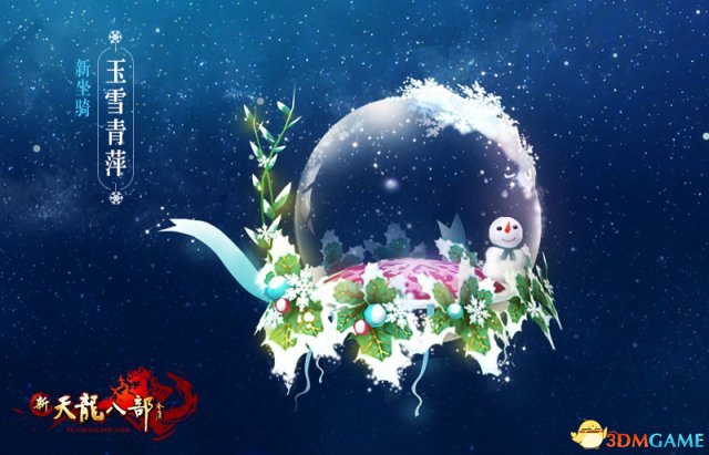 这恐怕是坐骑中最应景也最梦幻的一个,荧蓝色的丝带牵着雪花魔力球,俏皮的小雪人坐在玻璃球里张望着雪中的洛阳城。挂着霜雪的圣诞冬青叶点缀周围,浪漫的如同童话世界。