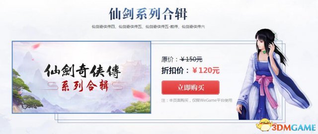12月12日,《仙剑奇侠传》系列中的四部作品在腾讯WeGame商店正式发售。其中仙四、仙五、五前三部游戏,商城零售价均为30元,仙六零售价为60元。四款游戏上架首周9折优惠,同时推出的还有四部游戏产品的合辑包,优惠价为120元。