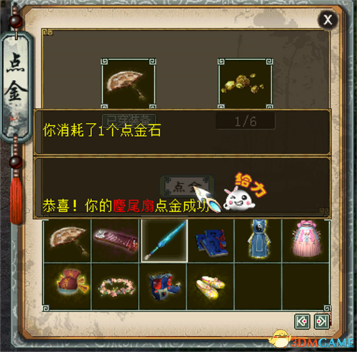 诸位玩家可先使用“点金石”进行点金,再使用“毓秀石”进行雕琢,强化2级以上孩子装备。装备雕琢可获得增强孩子天资的属性,还有几率获得孩子装备特技,若属性较好还能获得光武效果,还可使用“换骨丹”重洗本身附加的气质、名气等7项基础属性。此外,长安(123,94)铁匠屋内的木匠处将新增打造和分解功能,能打造特定部位3级孩子装备,以及将1至3级孩子装备分解为“毓秀石”。