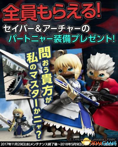 ·联动Fate系列新活动纪念,全员猎人将获赠随从喵原创装备和武器大剑和弓,喜欢的玩家不要错过哦。