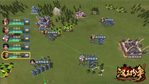 现有的SLG手游多采用“一来一回”的回合制行军方式,玩家只能派遣军队在主城和目的地之间往返,游戏策略性大打折扣。《汉王纷争》则设计了自由行军的操控方式,玩家可自由操纵行军路线,随时调整目的地或改变行军方向,并通过多变的路线,实现埋伏、包抄、反杀等策略,告别行军限制,妙计连连为所欲为!