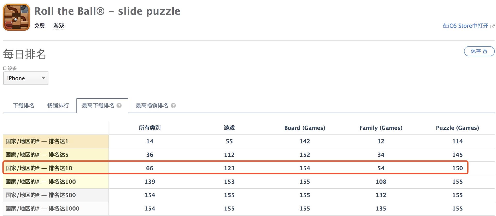 《Roll The Ball》最高曾进入123国iPhone免费榜前十,但开发商并未公布iOS下载数据