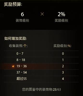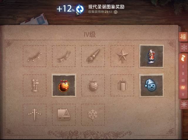 同去年圣诞树任务的计算方法不同,今年V级装饰物的装饰级别点数高达25,IV级点数为7,III级点数为4,II级点数为2,I级点数为1。因此,V级装饰物的价值非常高。如果将装饰级别提升至X级,总共可以获得4个女成员,合计大约价值670万银币的购买折扣,若干车位、大补给、经验加成以及特殊徽章。