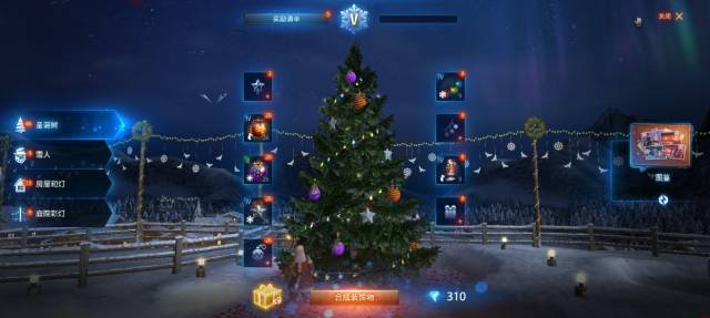 将装饰物挂在圣诞树等地方,可以提升装饰级别。圣诞树、雪人等四个区域一共有13个位置可以挂装饰物,不过每个位置需要挂特定类型的装饰物,一共有8种类型。